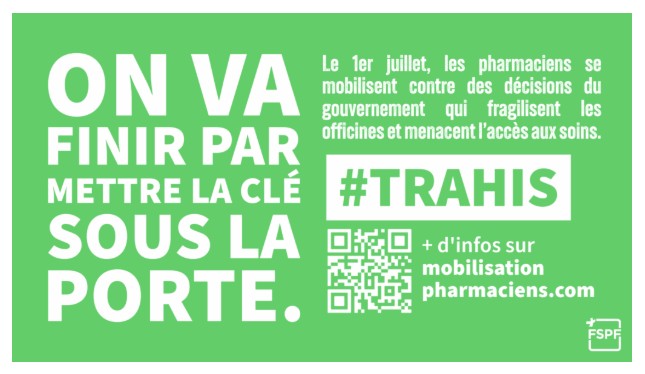 Urgence… Mobilisons-nous en masse !La décision unilatérale et sans aucune concertation du gouvernement Bayrou de baisser les remises génériques est une réelle trahison pour notre profession.· Trahie sur les baisses de volumes et le prix des médicaments remboursés.